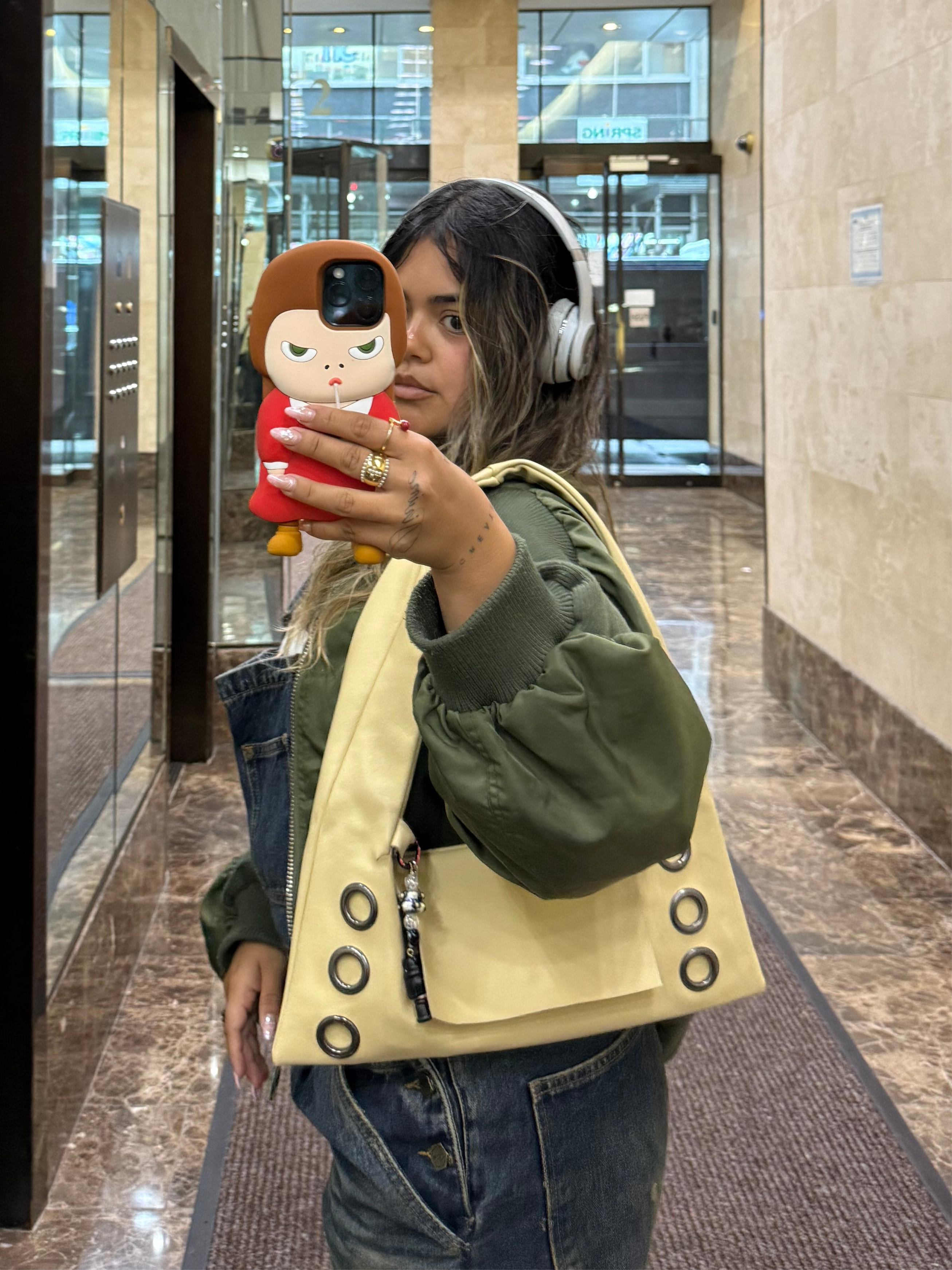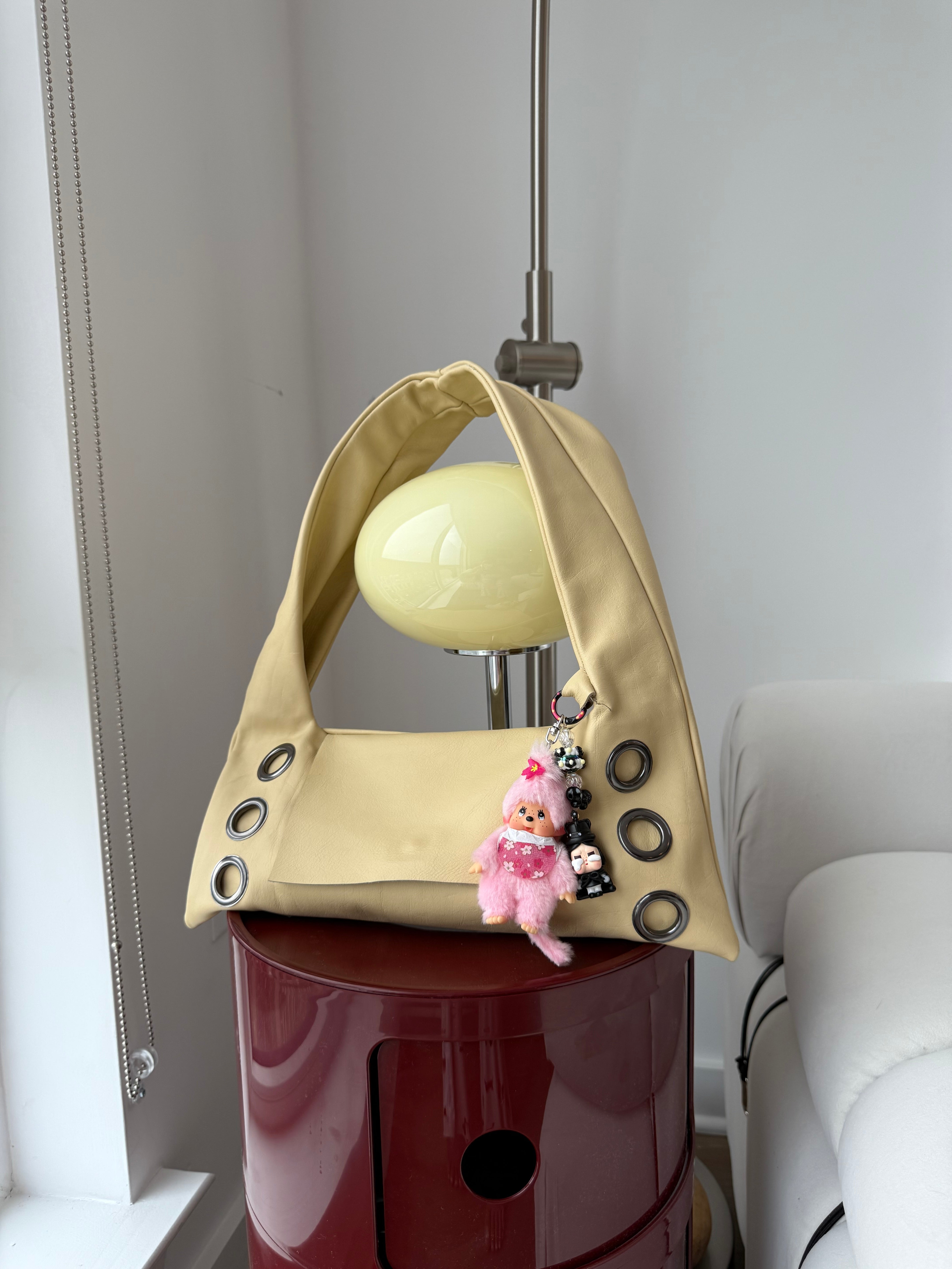 La Grommette Bag contains an interior pocket to keep small essentials like your lippy & cards organized and easy to find. Featuring six oversized grommets and a built-in fabric loop making it easy to personalize your bag with endless charm combos. Comes with dust bag.