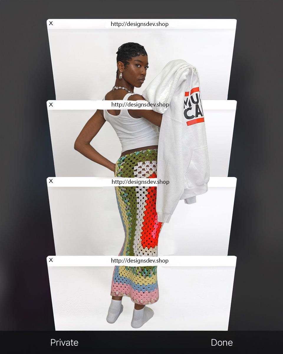 Handmade 1 of 1 reworked skirt from a thrifted blanket. Meant to sit low rise. Model is 5’11. Please allow 1 week to ship. Can fit XS-XL please dm us on ig @designsde.v or email us at designsdevcompany@gmail.com with your desired waist measurements after purchase.
