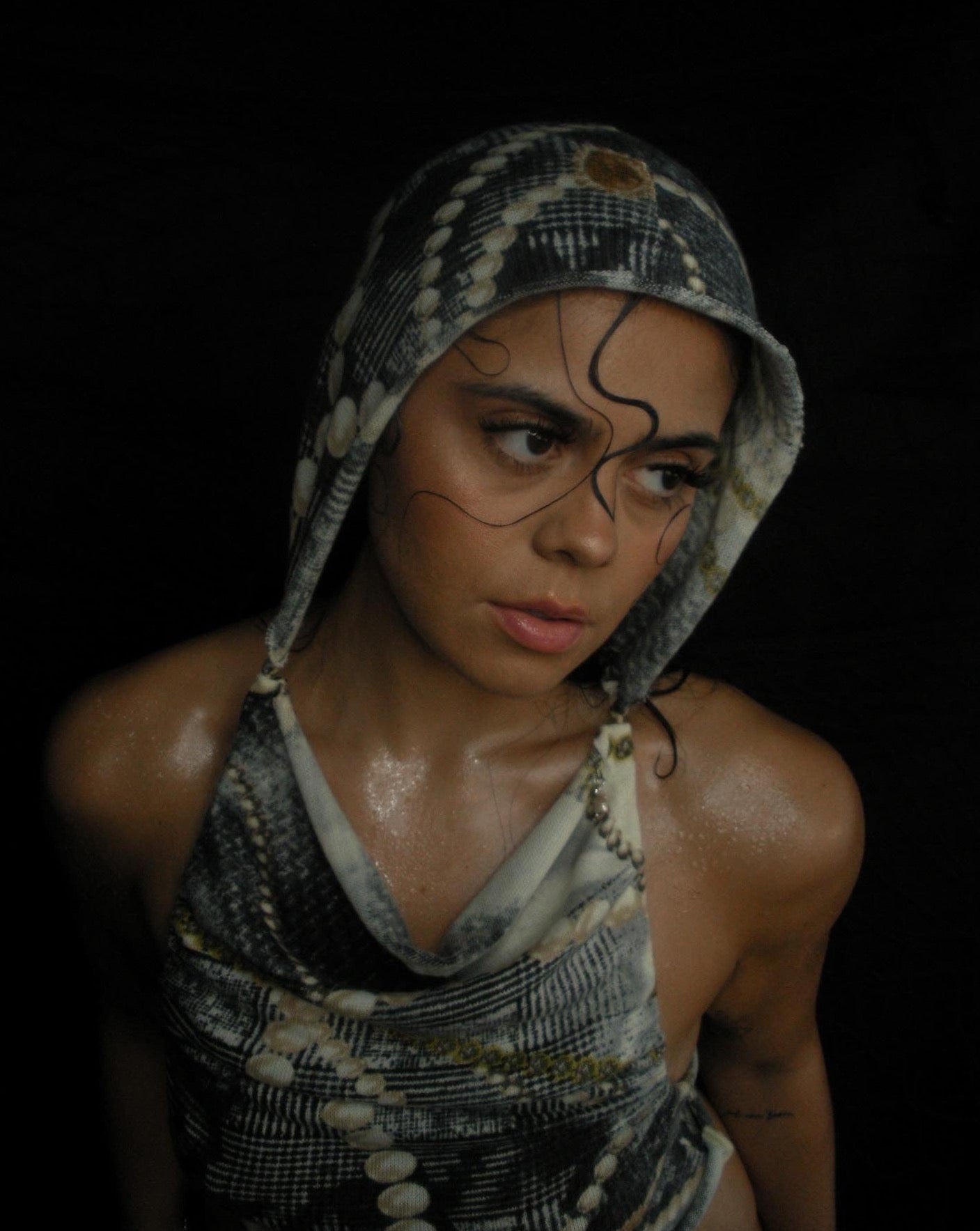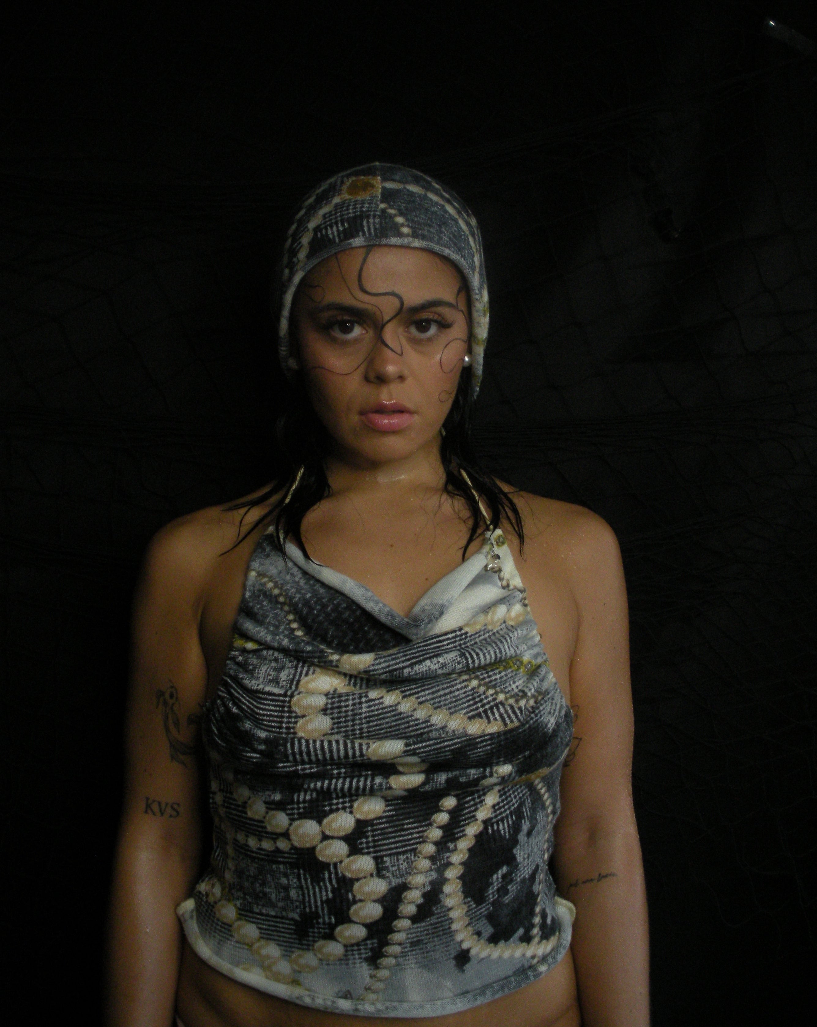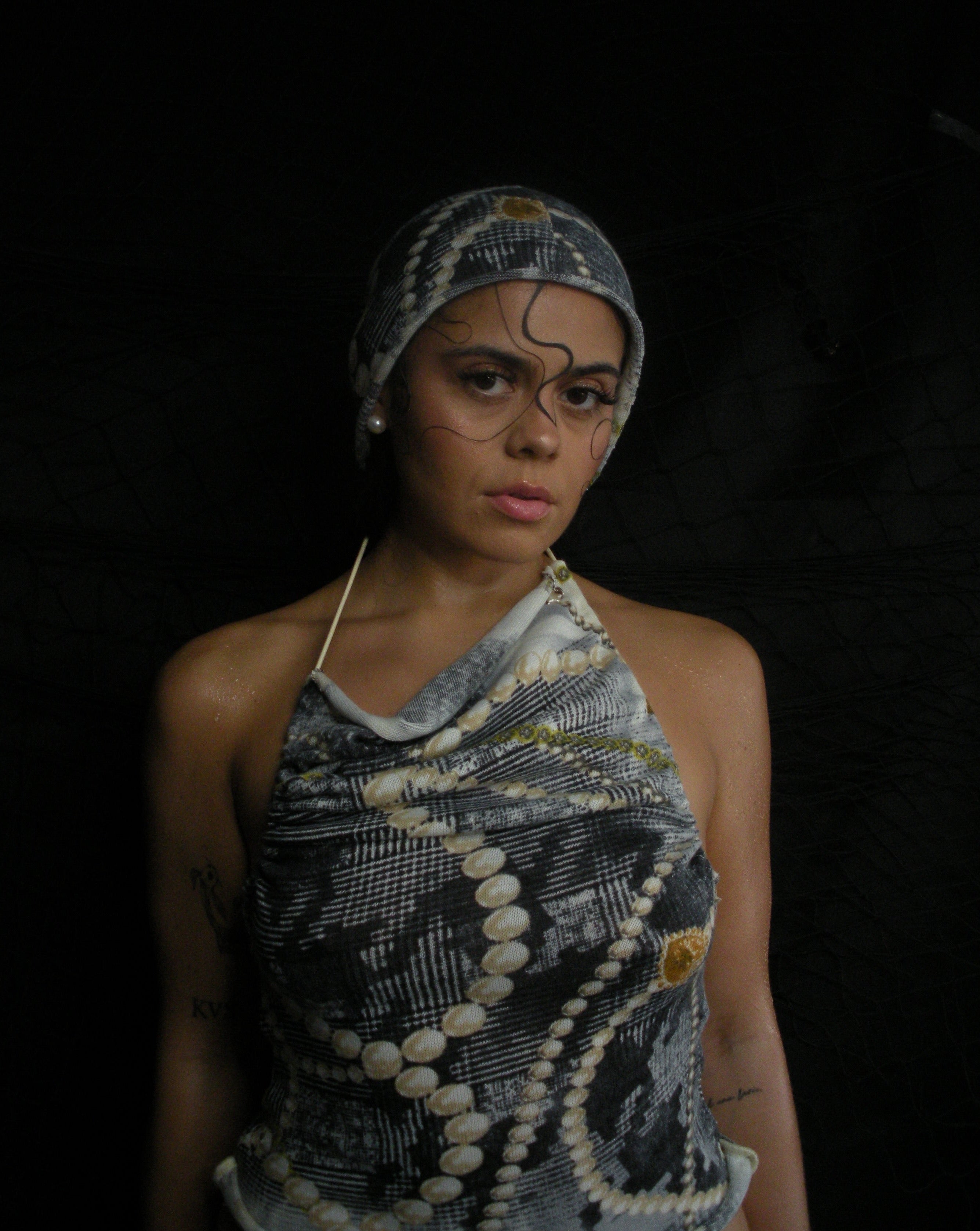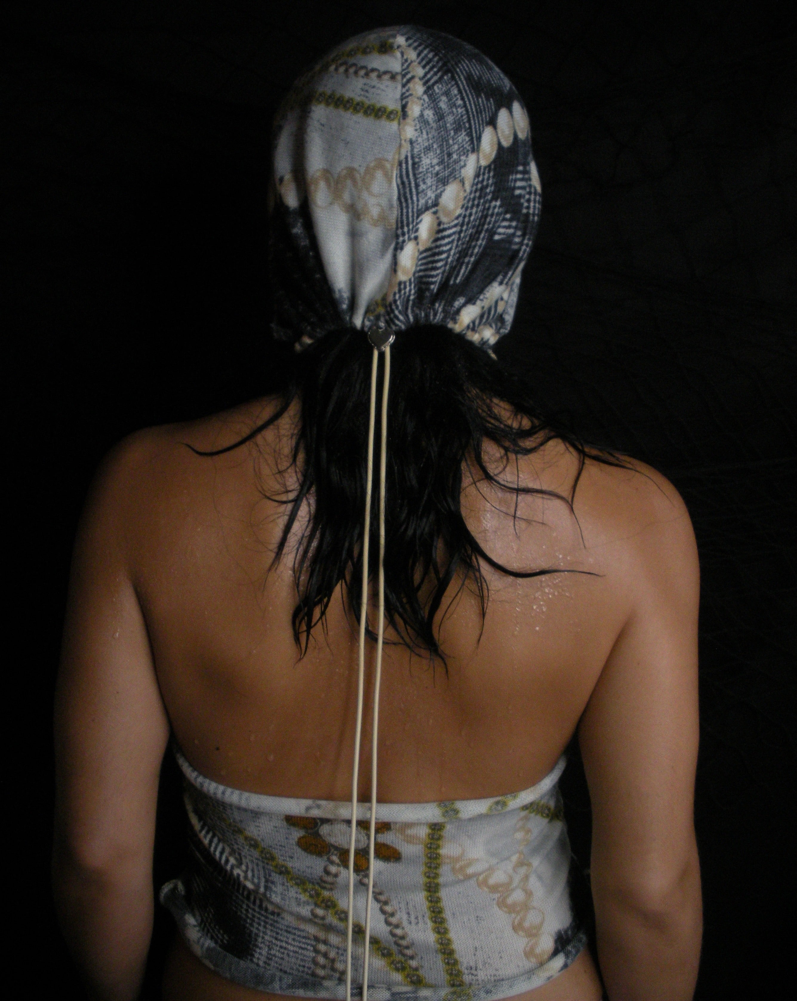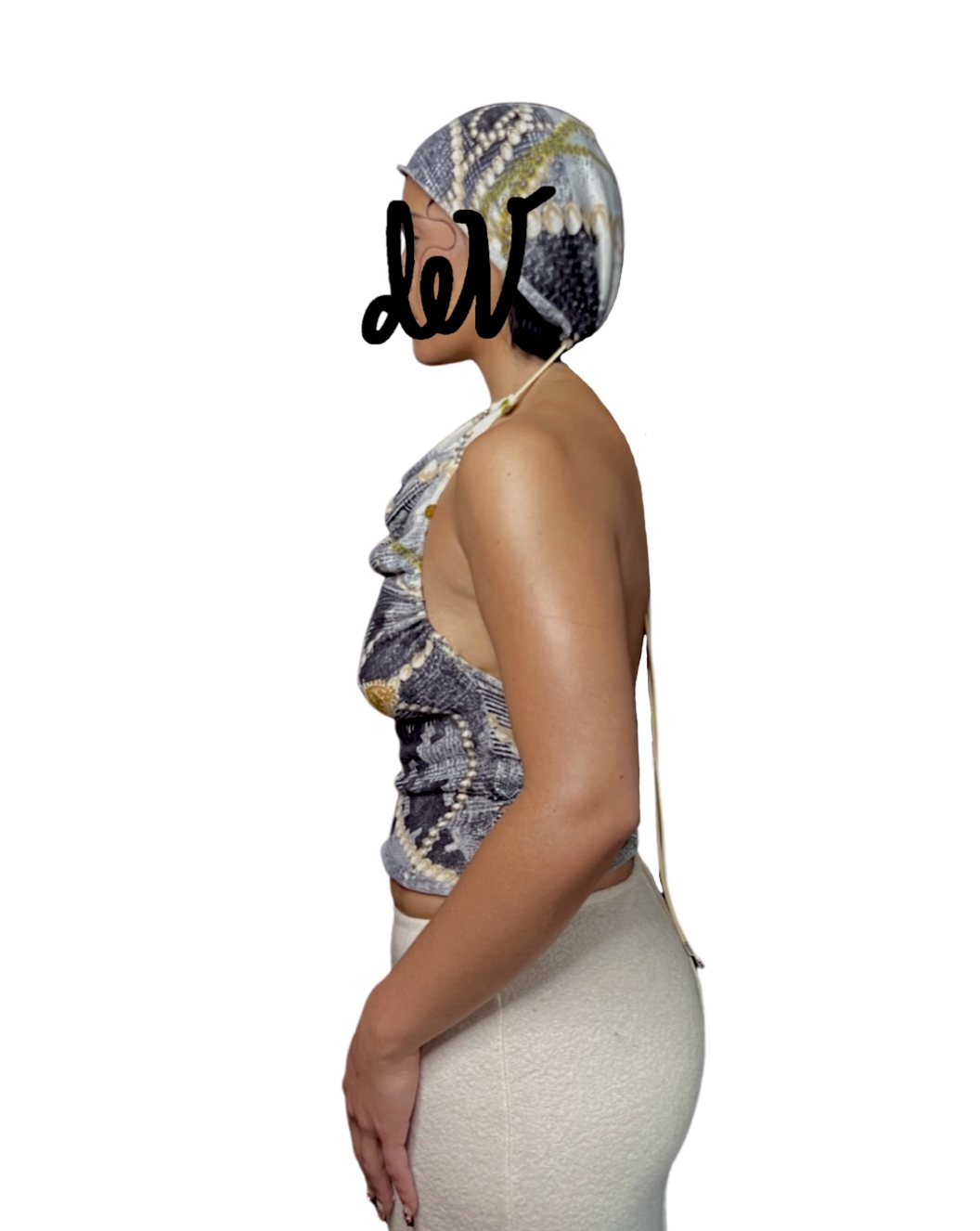 Our Calipso de Perla Top is made of an Italian knit featuring an adjustable cowl neck with an attached hood. Details include a freshwater pearl logo charm and a heart toggle.